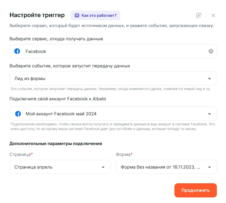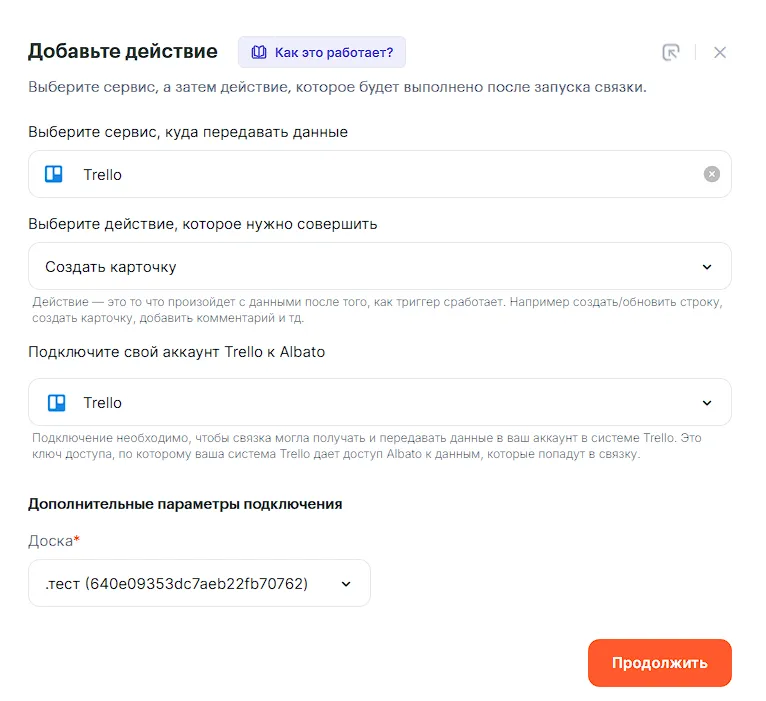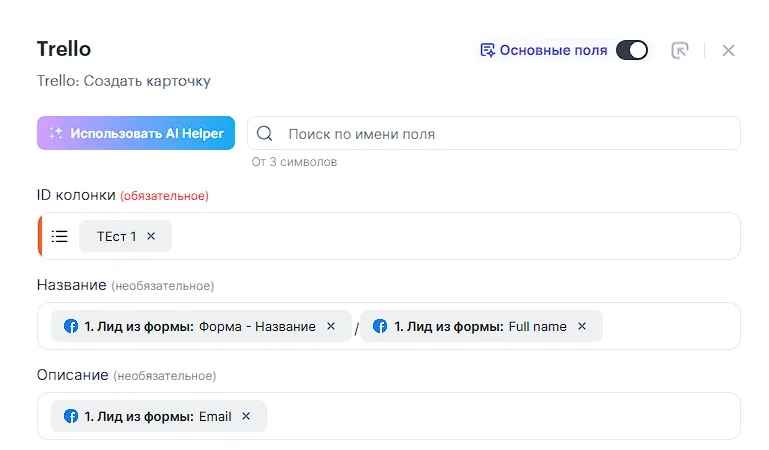 Рассмотрим пример создания связки, которая будет создавать новую карточку в Trello при заполнении формы в Facebook.
