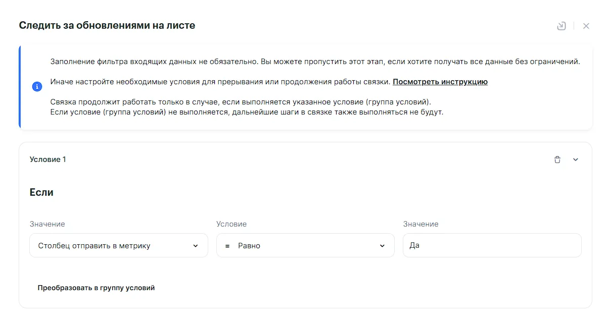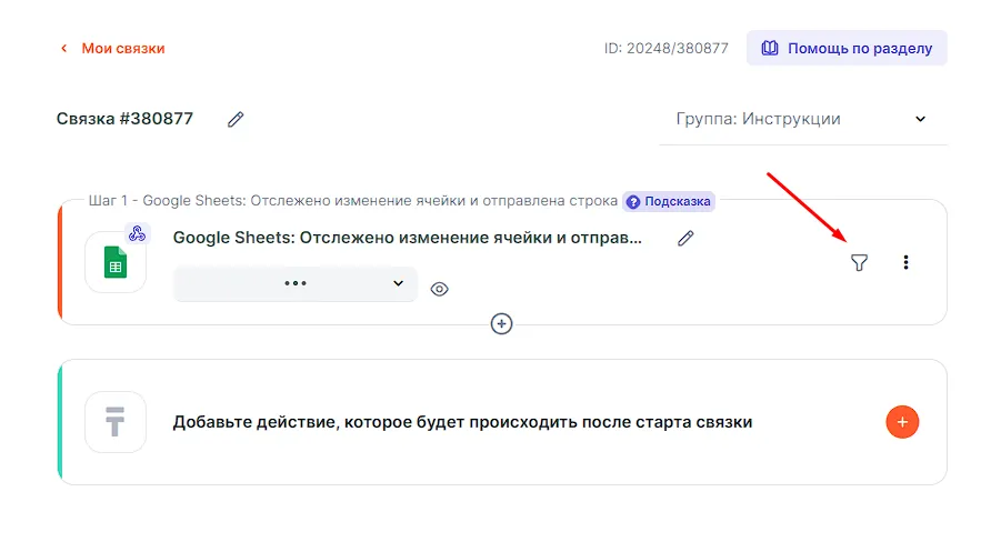Наша связка будет запускаться при заполнении столбца, поэтому ставим фильтр: