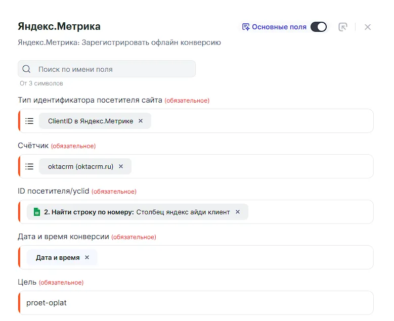 • ID посетителя/yclid — параметр от шага 2