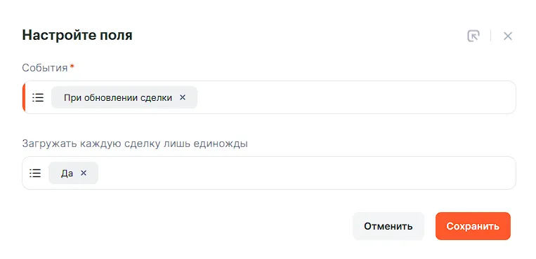 Рассмотрим пример инструкции, которая будет передавать конверсию в Яндекс.Метрику при попадании сделки на определенный статус.