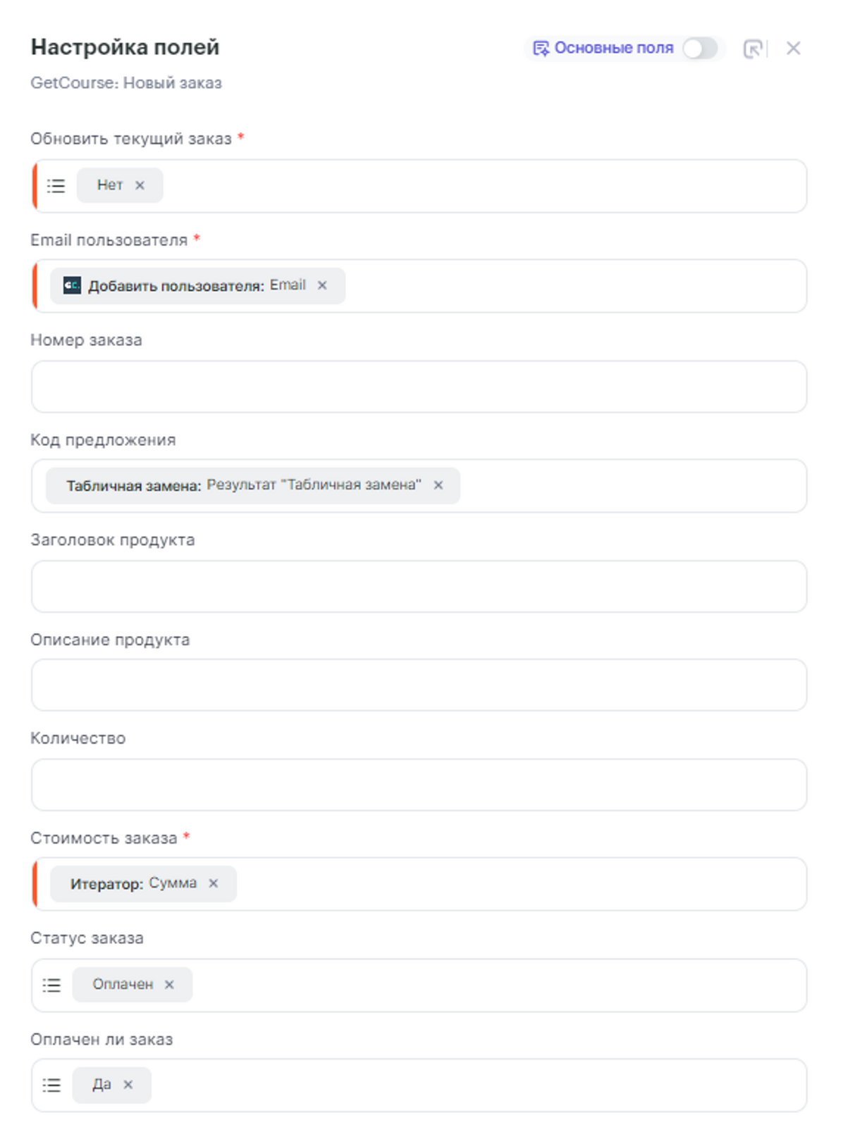 - Номер заказа — параметр ID лида из шага 1