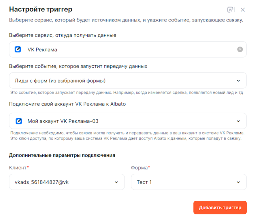 Подключение VK Рекламы к Альбато