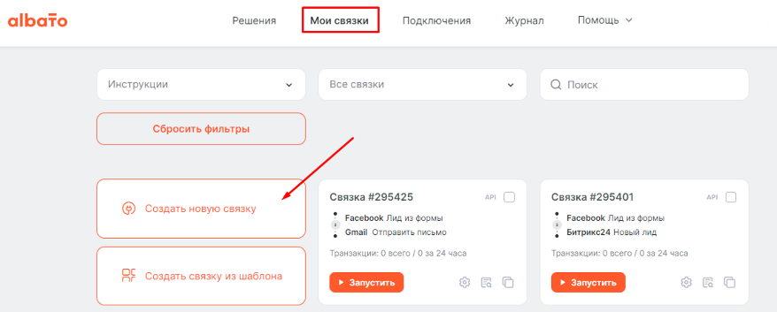 Переходим к созданию связки в разделе Мои связки — Создать новую:
