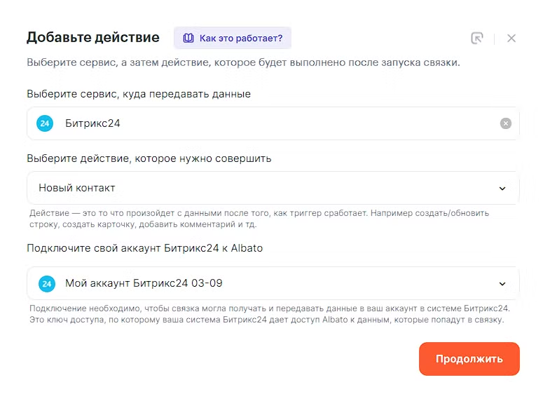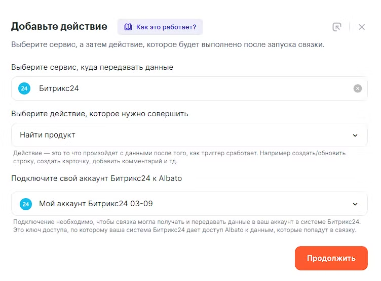 Перед созданием связок убедитесь, что оба сервиса подключены к Альбато.