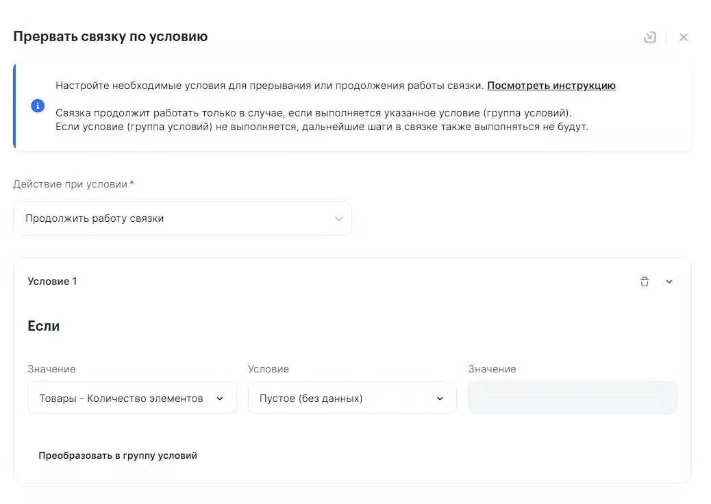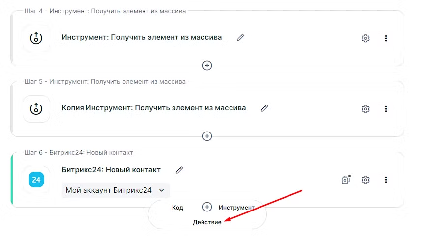 Настраиваем шаг, если товара в Битрикс24 нет, создадим новый: