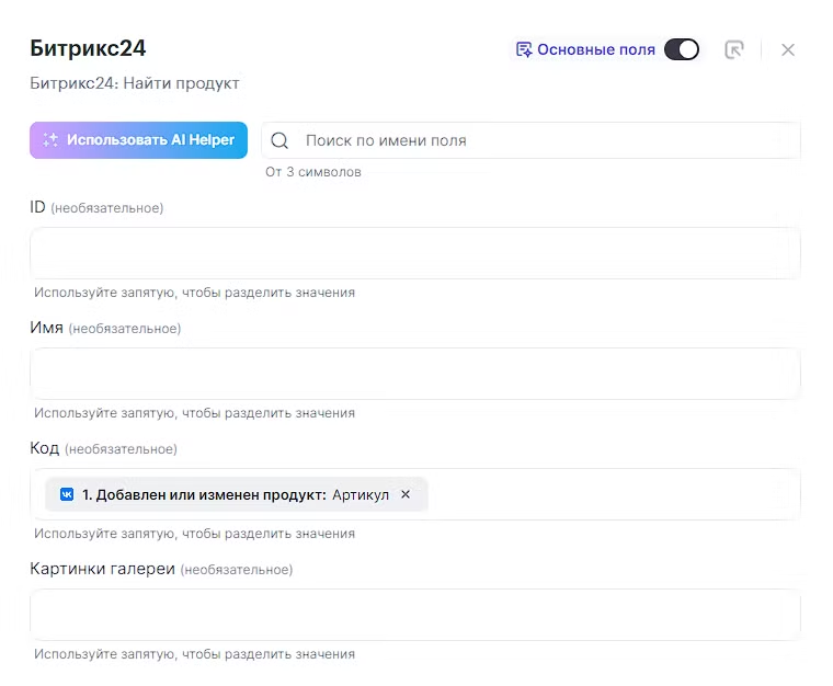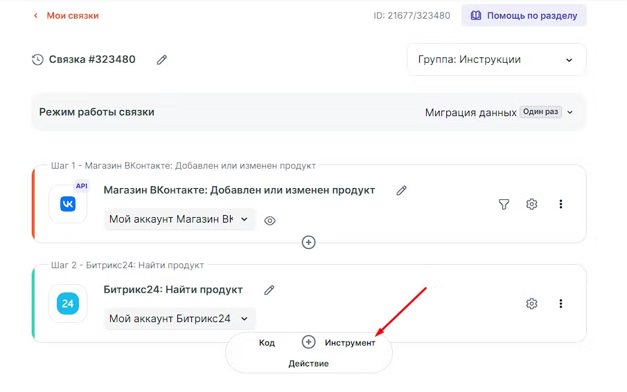 Связка 1 — выгрузит имеющиеся товары из Магазина ВКонтакте в Битрикс24, а потом будет передавать каждый созданный товар в реальном времени.