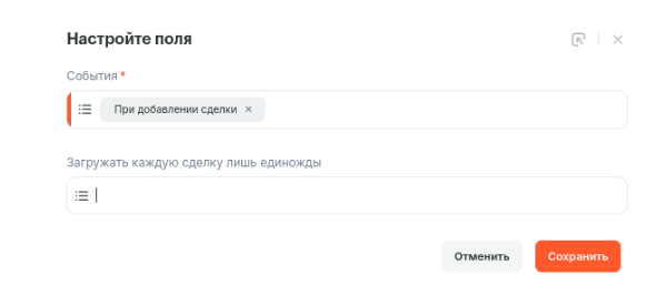 - При каком событии запустится связка — Изменение/создание сделки