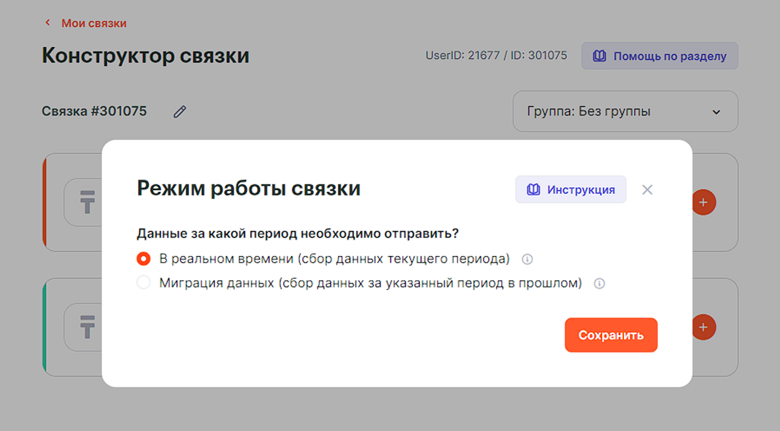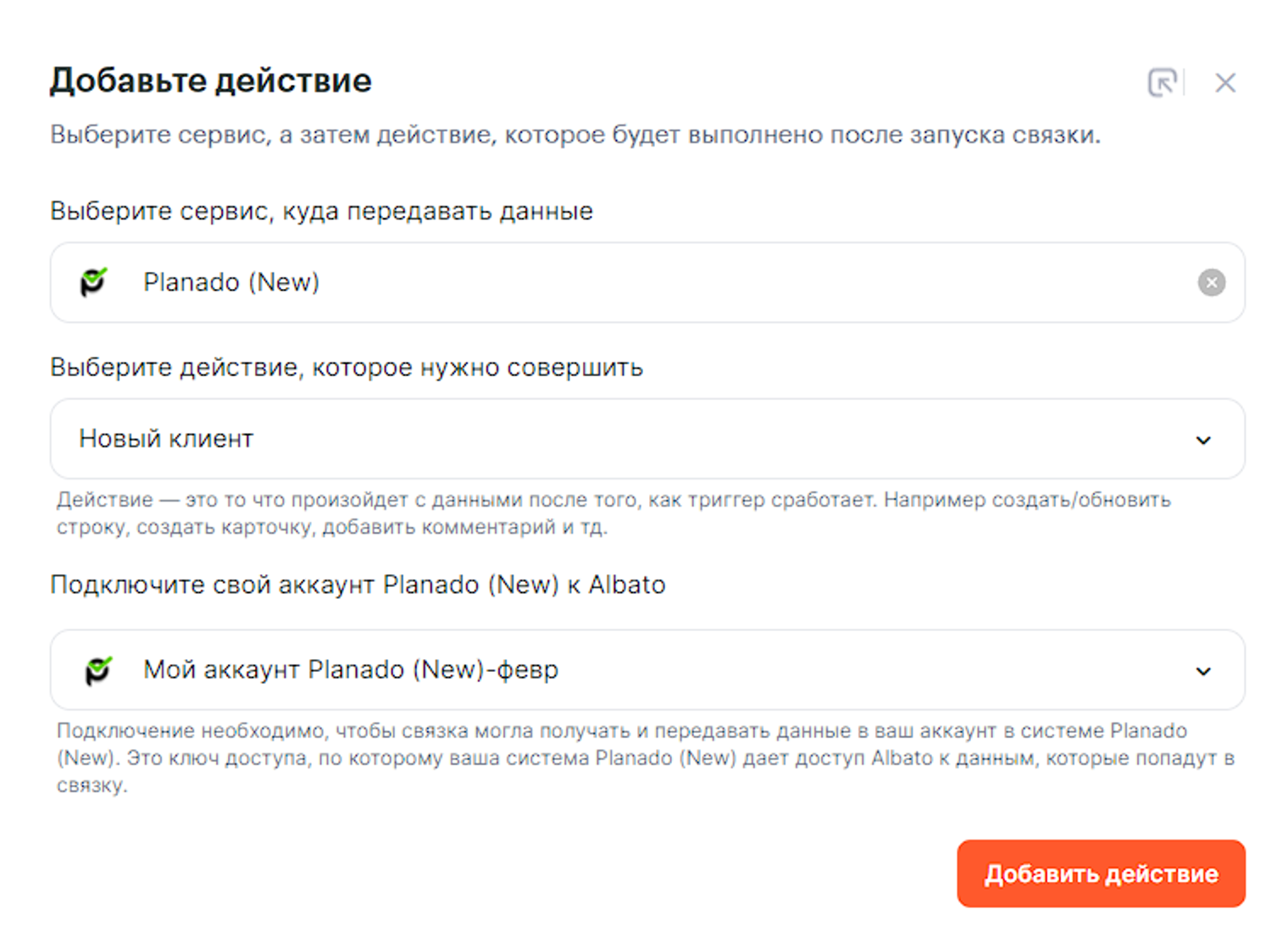 Перед созданием связки убедитесь, что оба сервиса подключены к Альбато.