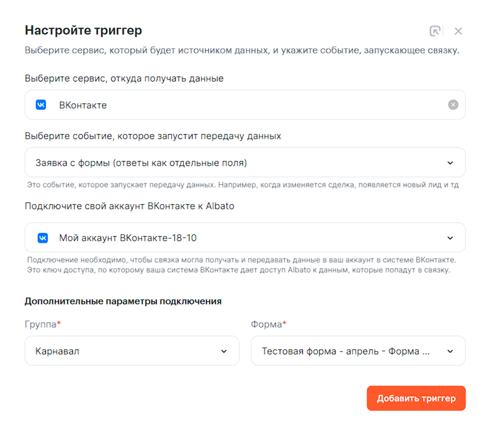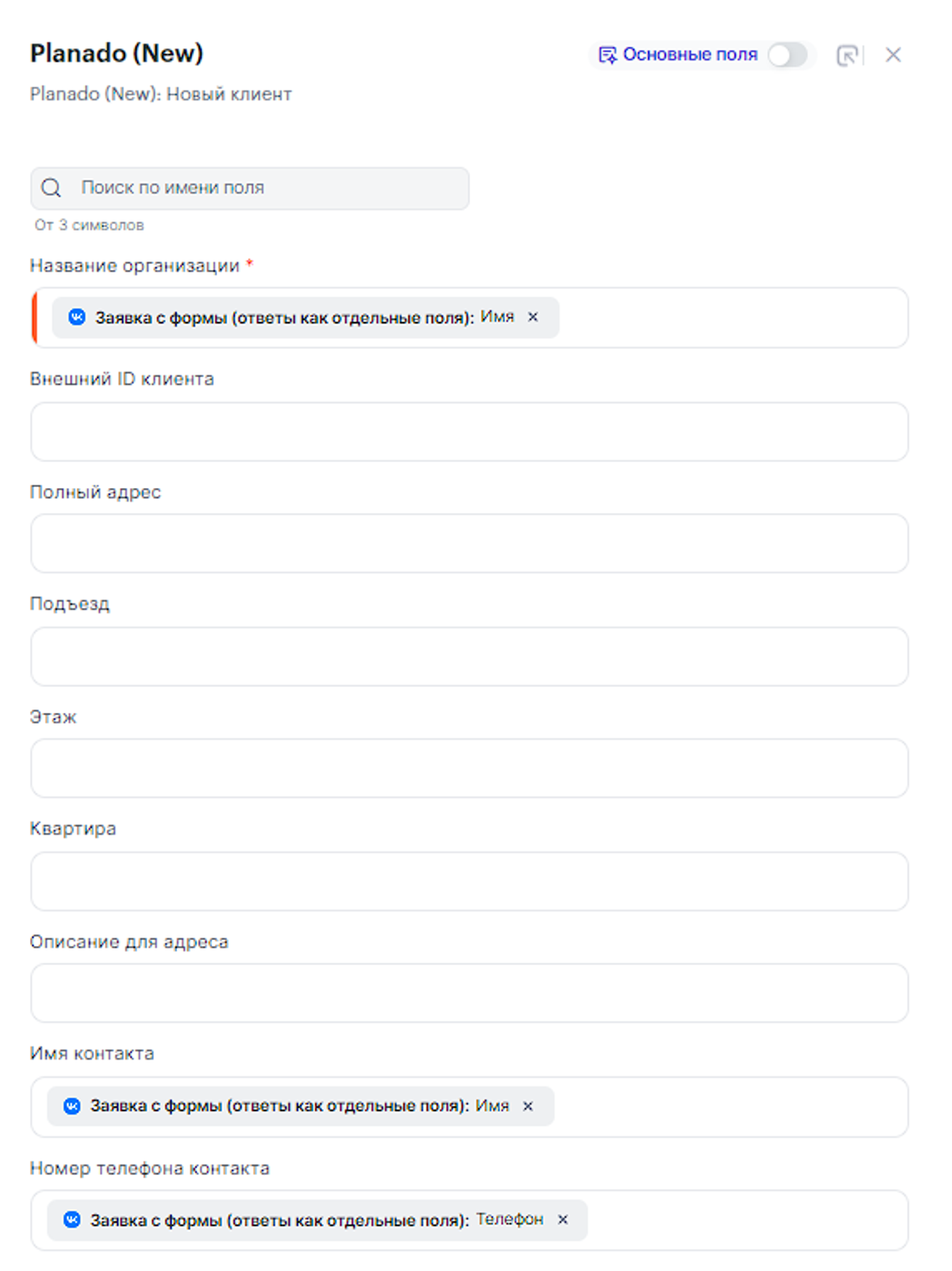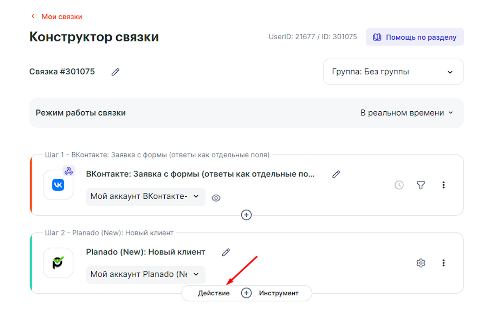 В данной инструкции рассмотрим пример создания связки, которая будет создавать нового клиента и наряд в Planado при заполнении формы в ВКонтакте.