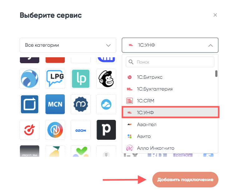 Подключение 1С:УНФ к Albato