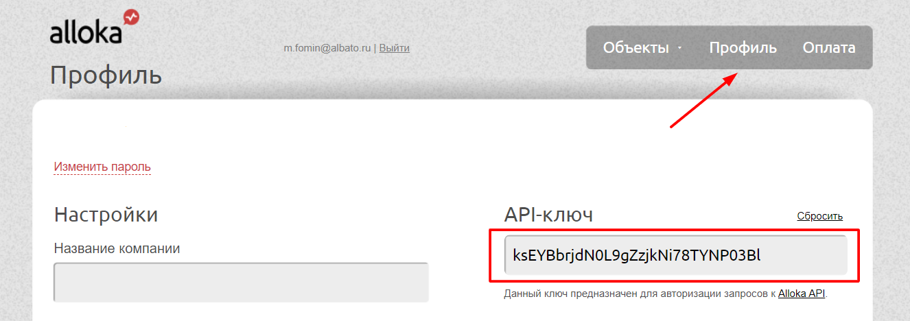 Не закрывайте настройки Albato и войдите в личный кабинет Аллока.