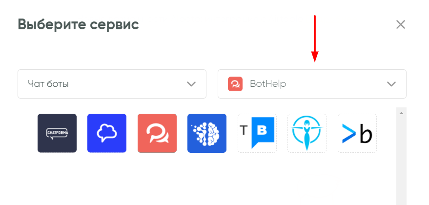 В левом блоке выберите категорию чат-ботов или воспользуйтесь поисковой строкой в правом блоке. Выберите BotHelp и нажмите «Добавить подключение».