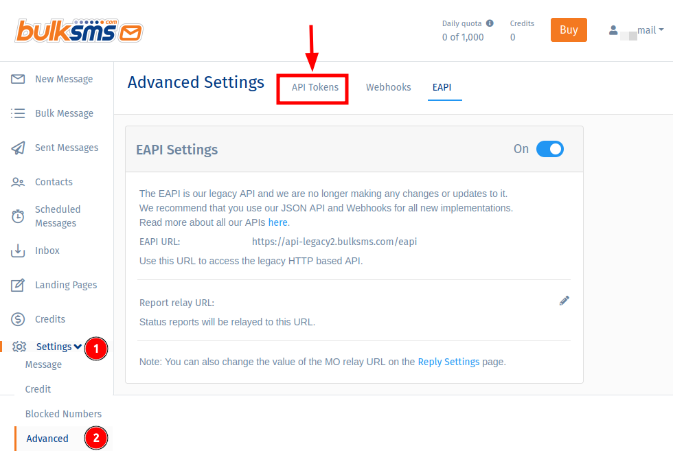 Для этого заходим в меню Settings → Advanced → API Tokens.