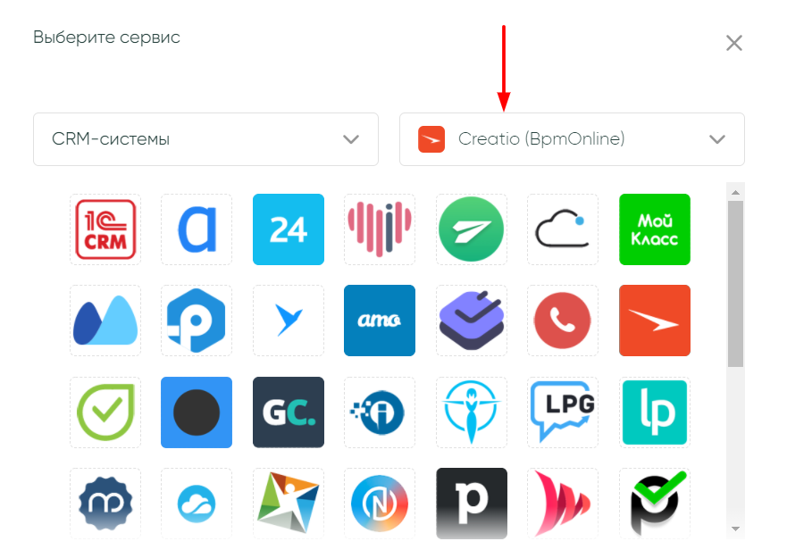 Теперь выберем категорию «CRM-системы» и кликнем по логотипу сервиса. Кроме этого, можно воспользоваться поисковой строкой и найти любой нужный сервис, который мы хотим подключить к Albato.