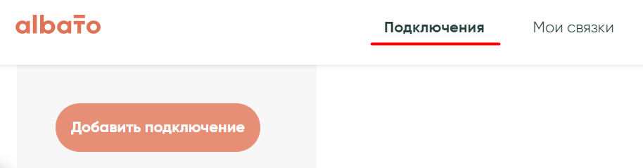 Для того, чтобы выполнить подключение CRM-cистемы Creatio к Albato нужно зайти во вкладку «Подключение» и выберите «Добавить подключение».