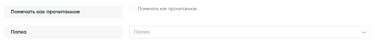 Если у вас на стороне почтового сервиса настроено распределение входящих по разным папкам, то в следующей форме можно указать письма из какой именно папки будут запускать связку. Чтобы в Альбато поступали все входящие — выберите папку inbox. Также, опциально, можно помечать на стороне почтового ящика входящие письма как прочитанные, если они прошли через связку в Альбато. Для этого поставьте галку в соответствующем чек-боксе.