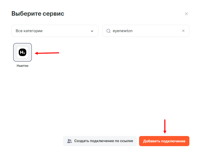 Перед созданием связок с использованием Eyenewton, необходимо подключить сервис к аккаунту Albato.