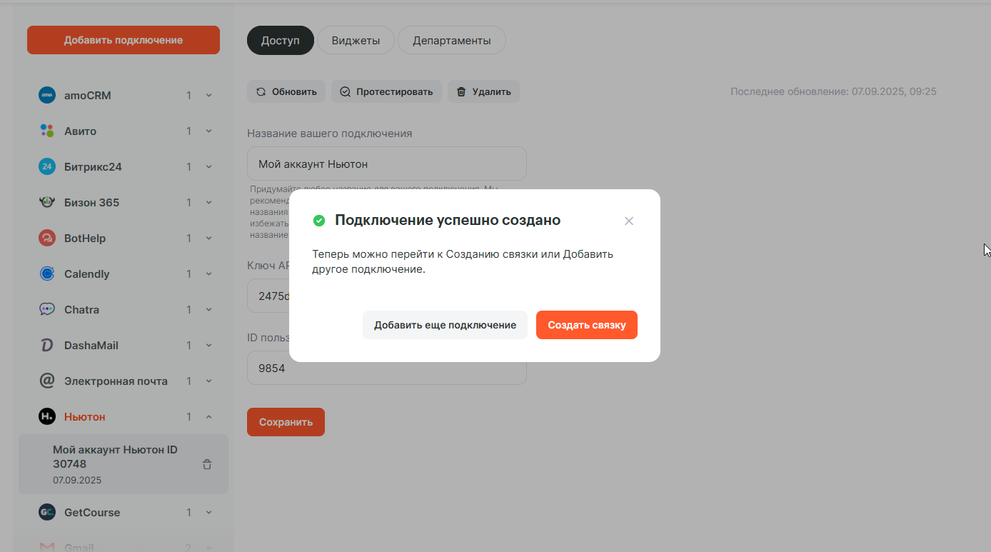 В открывшемся окне заполните поля нужными вами данными от первого шага связки и нажмите Сохранить.
