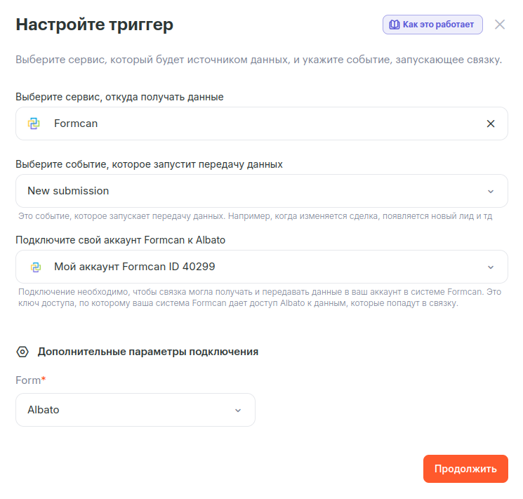 Полный список доступных триггеров и действий можно посмотреть на сайте https://albato.ru/app-formcan