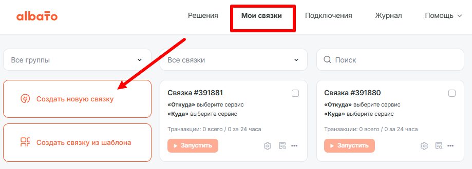 Перед созданием связки убедитесь, что оба сервиса подключены к Albato.