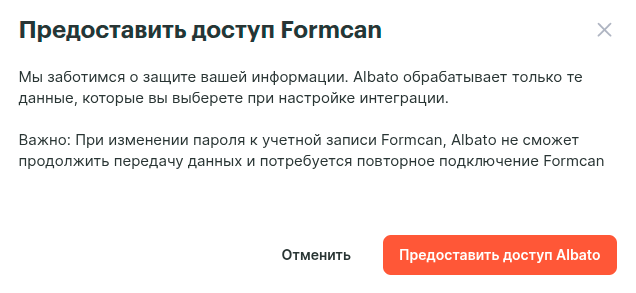 Нажимаем Далее -> Предоставить доступ Albato.