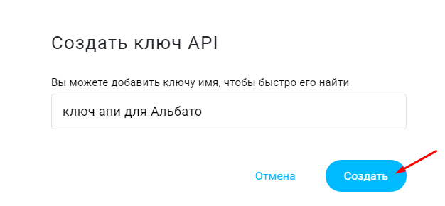 • Вписываем имя для нашего ключа и нажимаем «Создать»