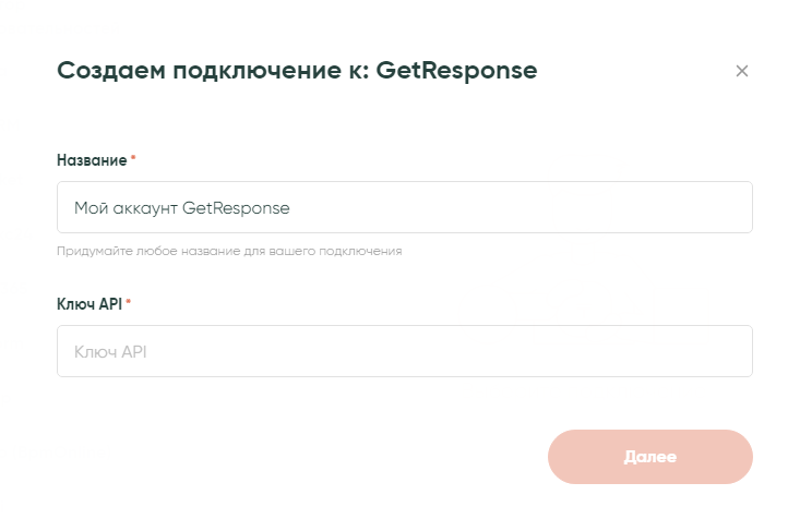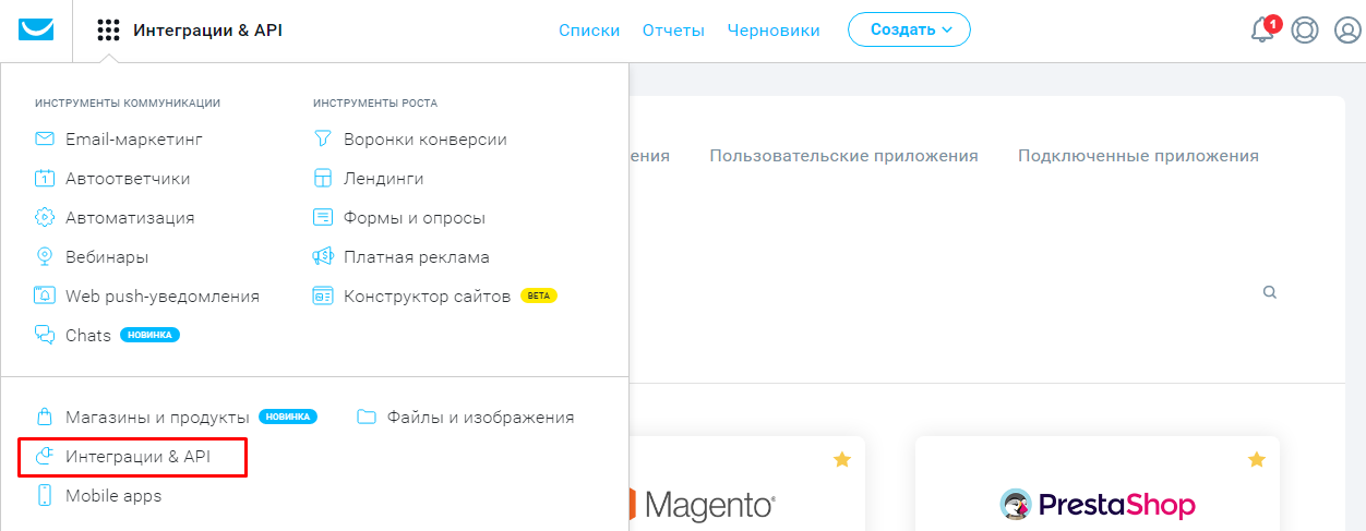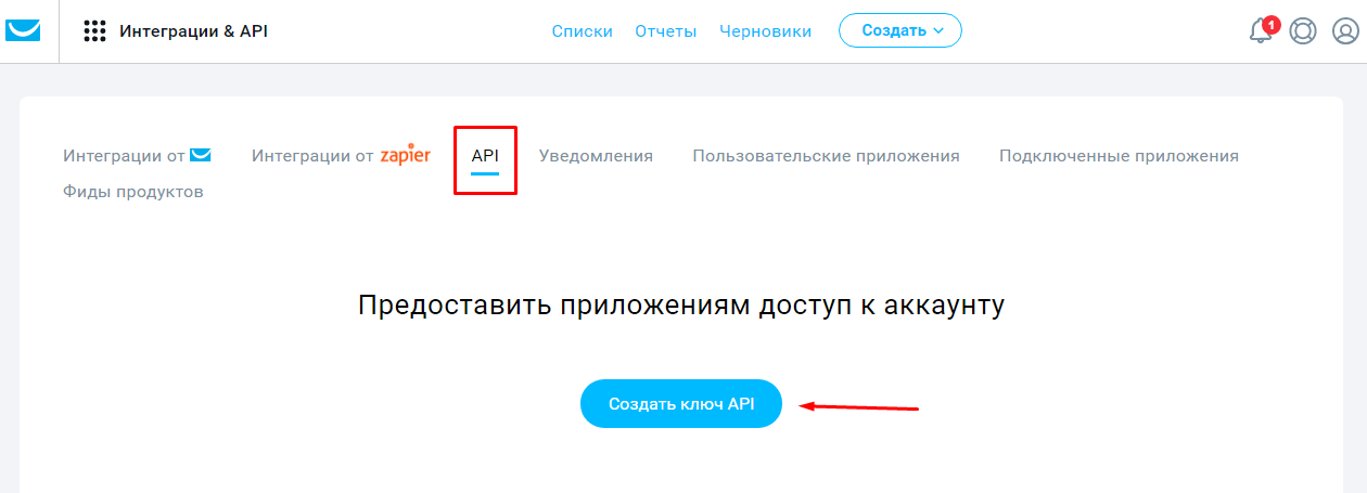 • «Ключ API», для его получения переходим в личный кабинет GetResponse — Интеграции&API