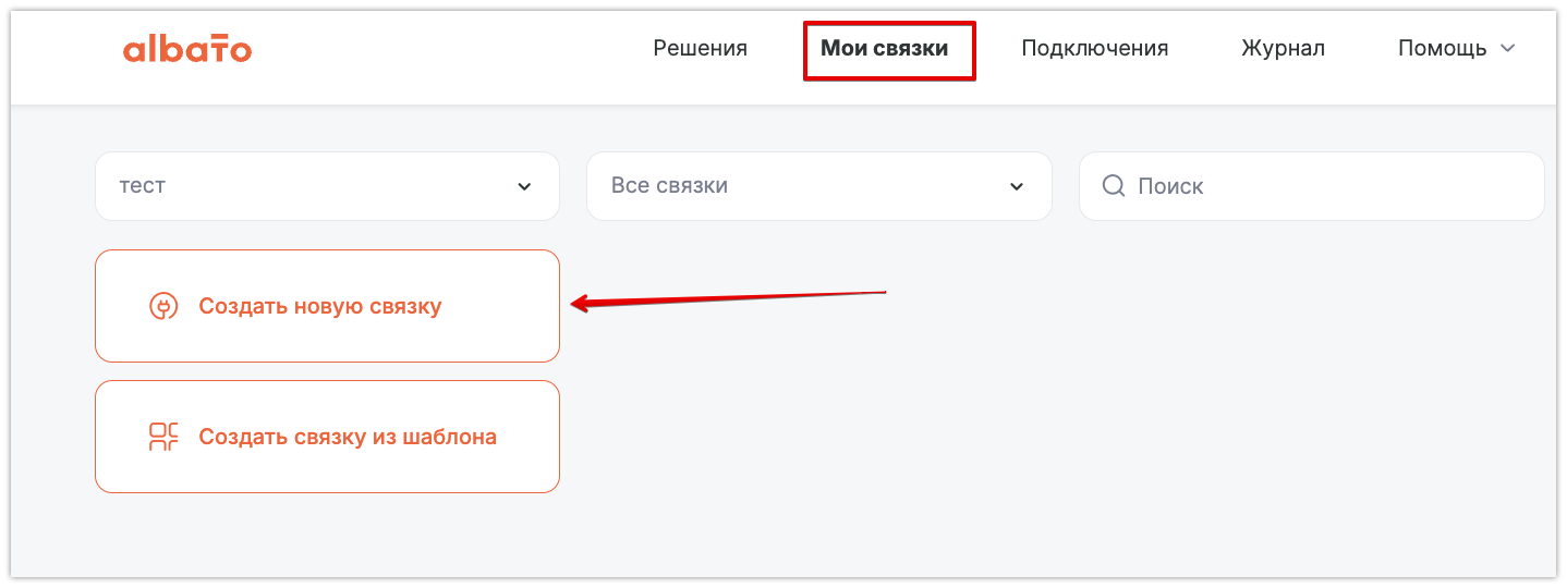 Чтобы настроить связку, необходимо перейти в раздел Мои связки вашего кабинета, и нажать на Создать новую связку: