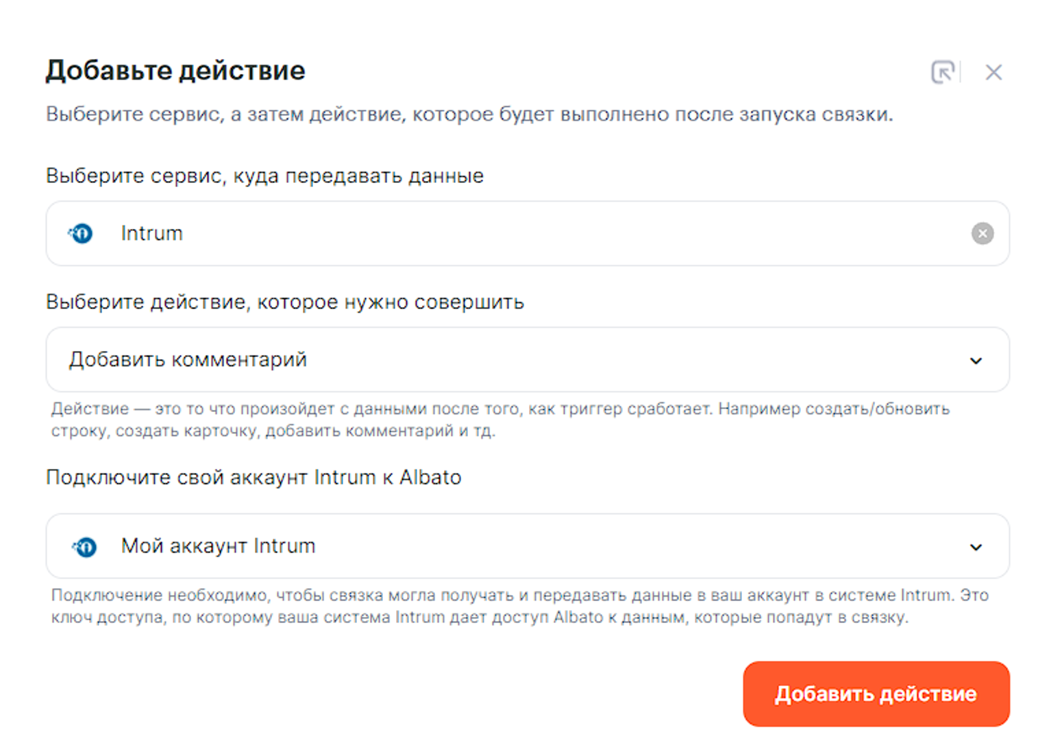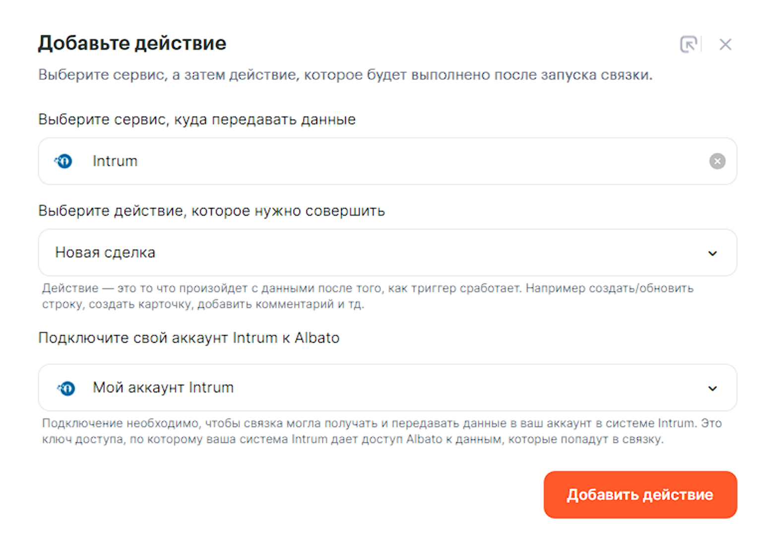 Доступные действия Действия — это то, что делает Albato после запуска связки. Также действия позволяют передавать данные в другие сервисы и системы.