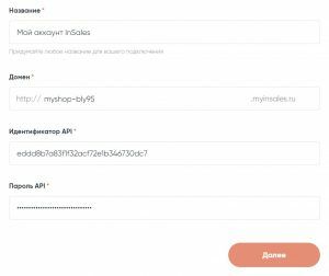 - Идентификатор API — берем идентификатор созданного ключа в ЛК InSales;