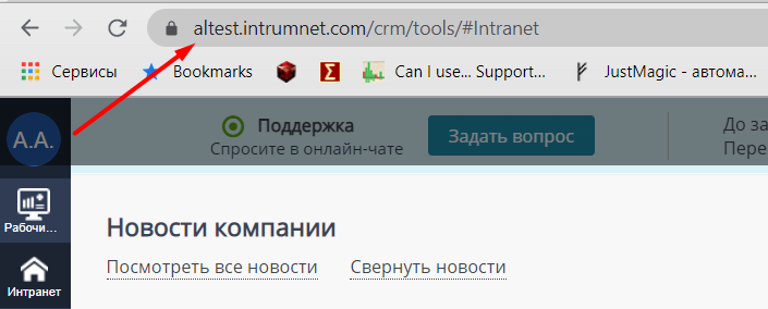 CRM URL можно взять прямо из браузерной строки в сервисе: