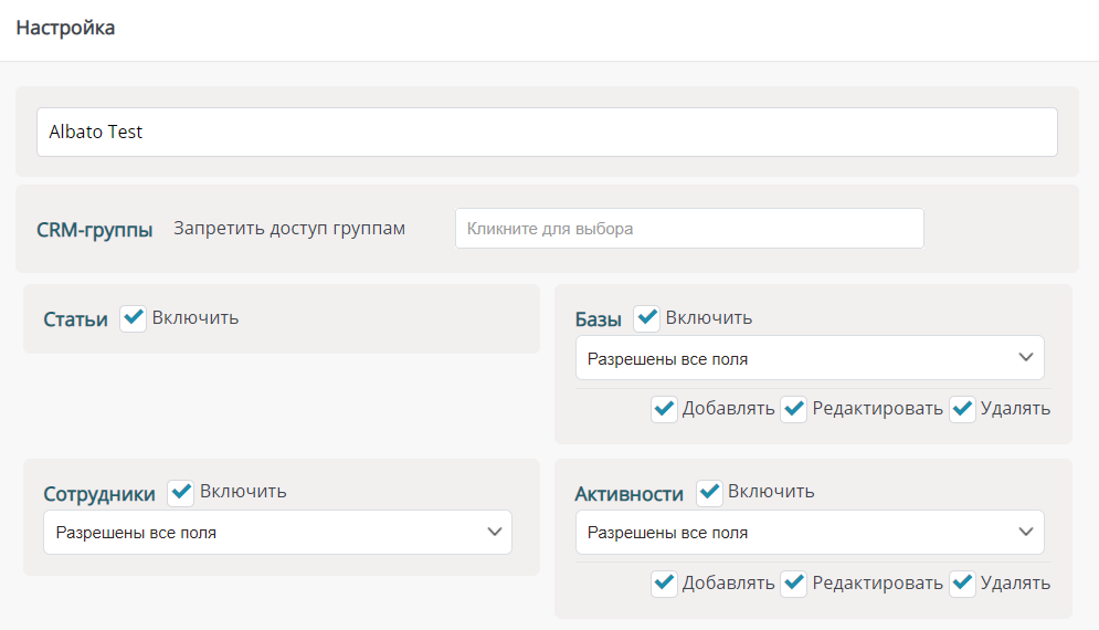 Проставьте галочки везде для того, чтобы использовать максимум полей и данных во время создания интеграций.