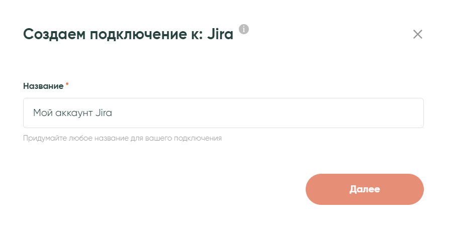 На следующем экране задайте название для подключение. Оно может быть любым, главное, чтобы вы не путались, если у вас несколько подключений сервиса, выполняющих разные цели.