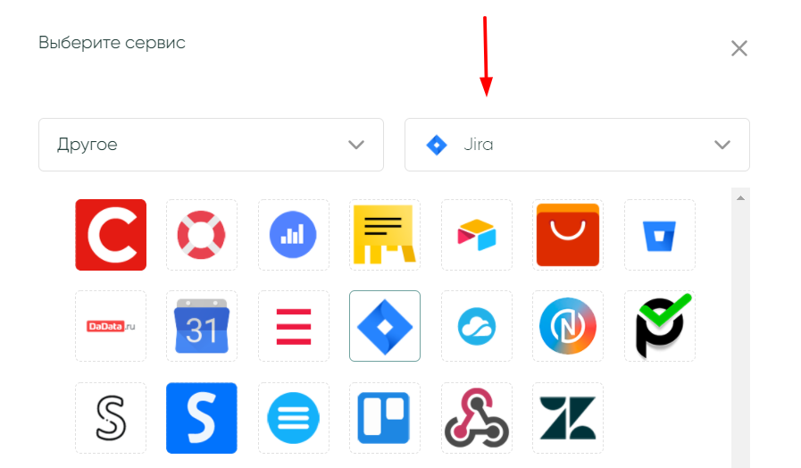 На новом экране можно воспользоваться поисковой строкой или найти сервис через поиск категориям. Jira находится в категории «Другое».