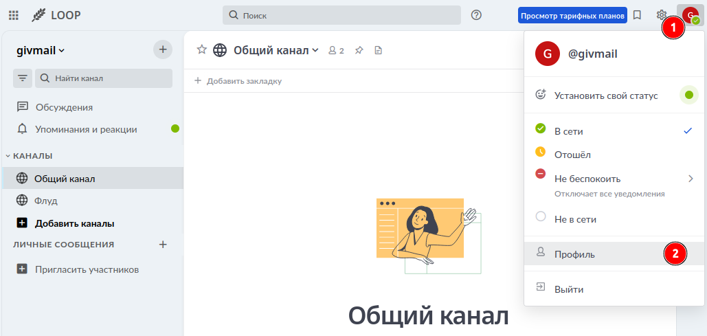 Переходим в меню Профиль.