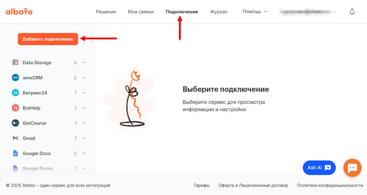 Создание подключения в Albato