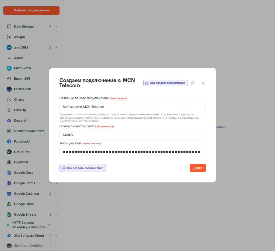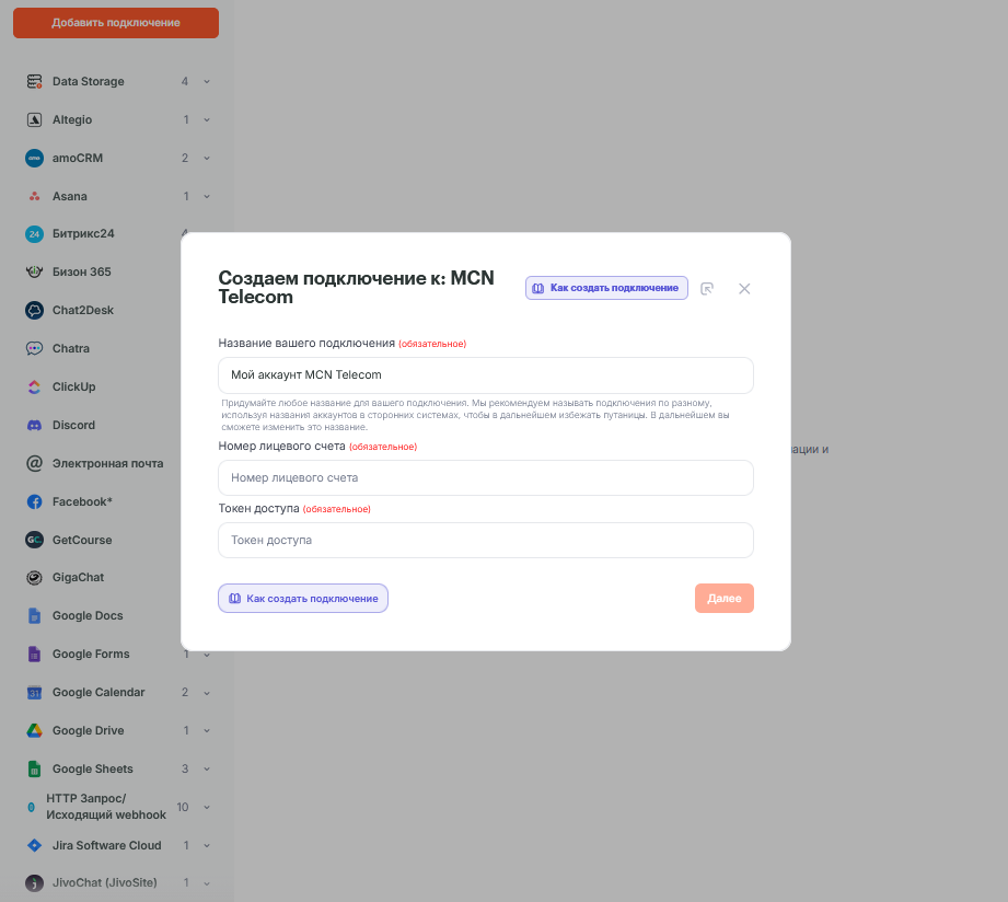 Подключение MCN Telecom к Albato