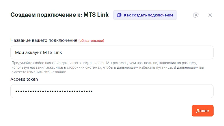 Нажимаем Сохранить. Готово! Теперь можно создать связку с передачей данных в MTC link.