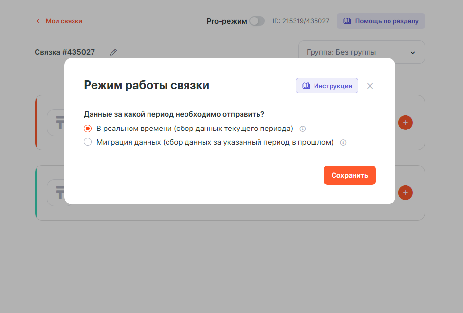 Далее появится модальное окно в котором можно выбрать вариант работы триггера — миграция данных или в реальном времени. В данном примере выберем в реальном времени и нажмём кнопку сохранить.