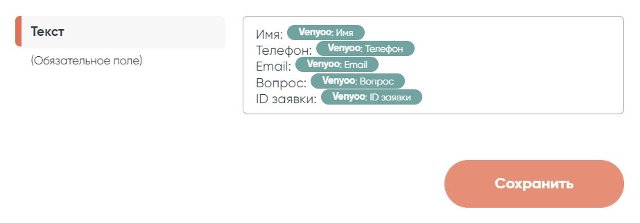Формируем шаблон отправляемого сообщения, нажимаем «Сохранить»: