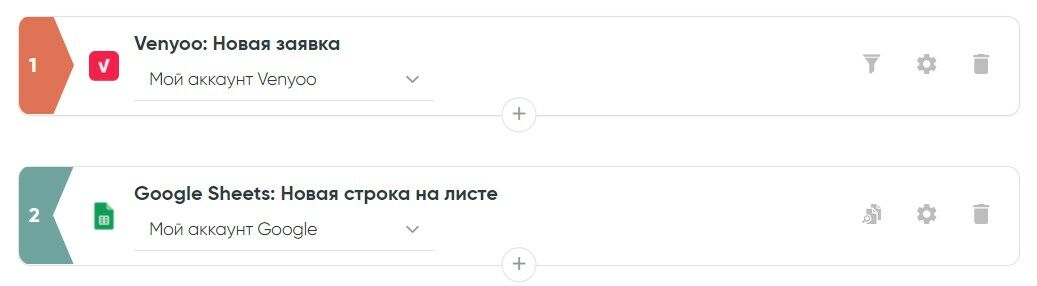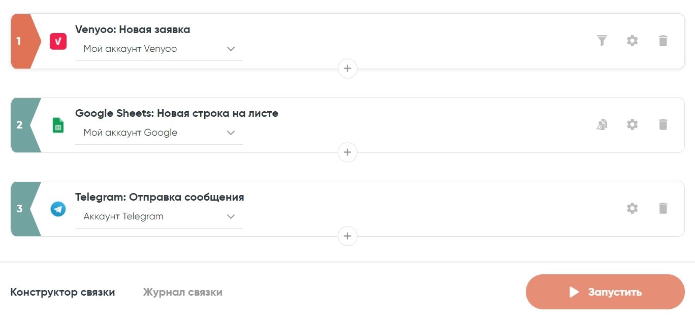 Чтобы продемонстрировать возможности интеграции с Venyoo, рассмотрим создание простой связки, которая позволит оперативно получать уведомления о новых заявках в Telegram и вести архив в Google Sheets.