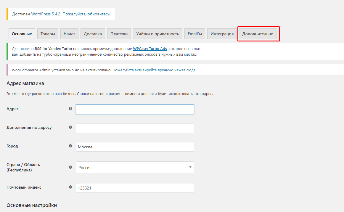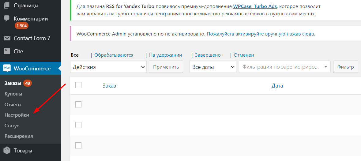 Для этого откройте WordPress и зайдите в настройки плагина WooCommerce: