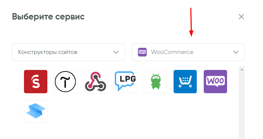 Для быстрого поиска выберите в левом блоке «Конструкторы сайтов» или воспользуйтесь поисковой строкой в правом блоке и выберите WooCommerce: