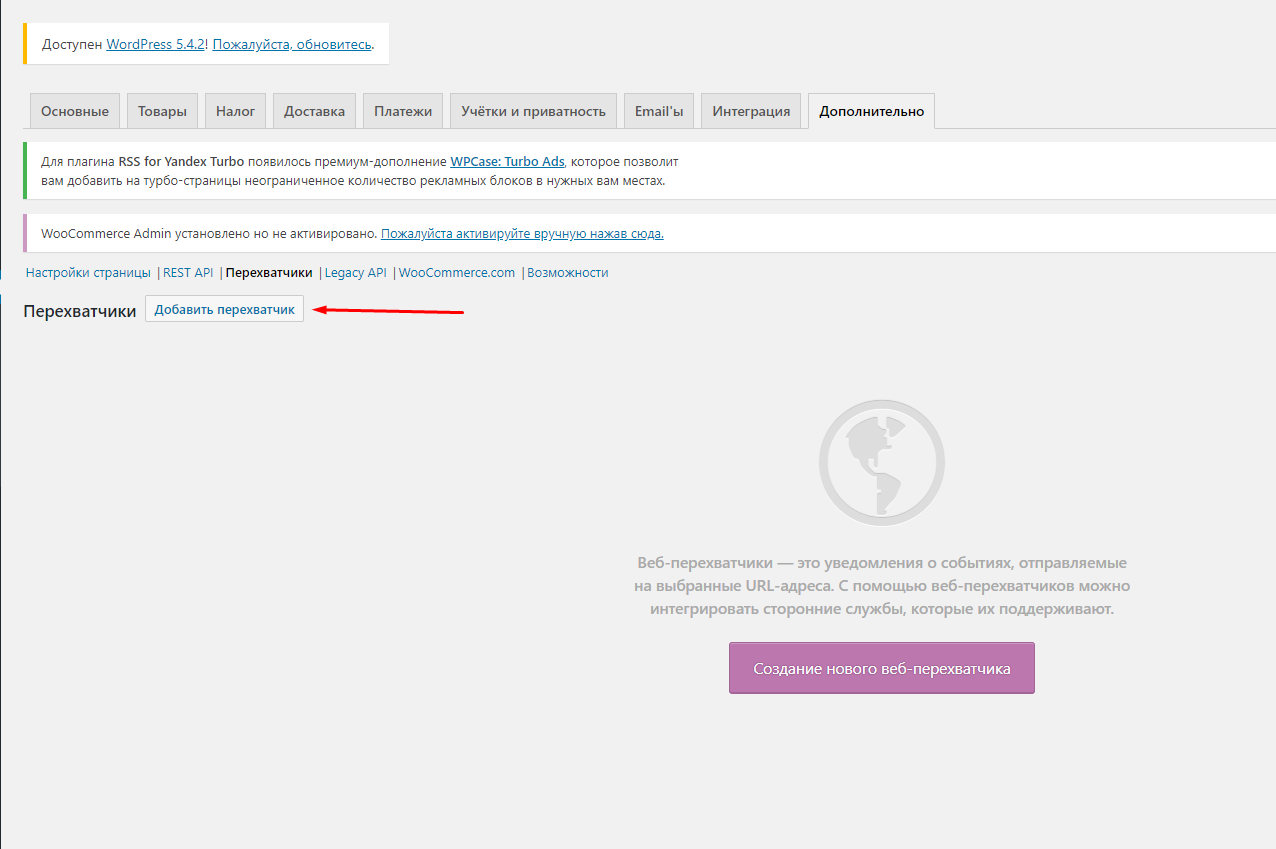 Нажмите на пункт «Перехватчики» (Webhooks на английском):