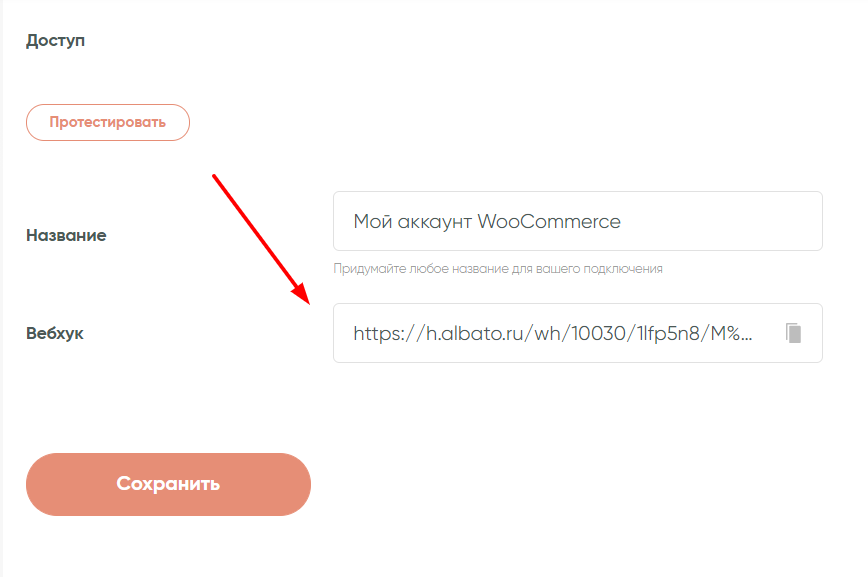 Подключение почти готово. Теперь скопируйте вебхук, далее его нужно вставить в WooCommerce.