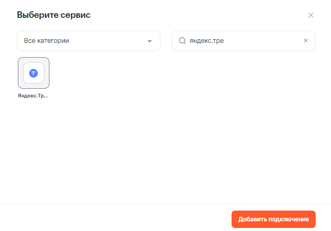 Выберите сервис и нажмите кнопку «Добавить подключение».