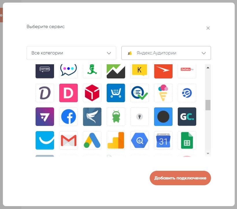 Для загрузки данных в в ваш аккаунт Яндекс.Аудитории, потребуется предварительно подключить его к Albato. Для этого в разделе «Подключения» нажимаем «Добавить подключение»: