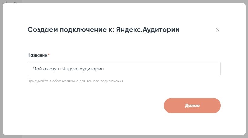 В открывшейся форме выбираем Яндекс.Аудитории, нажимаем «Далее»: