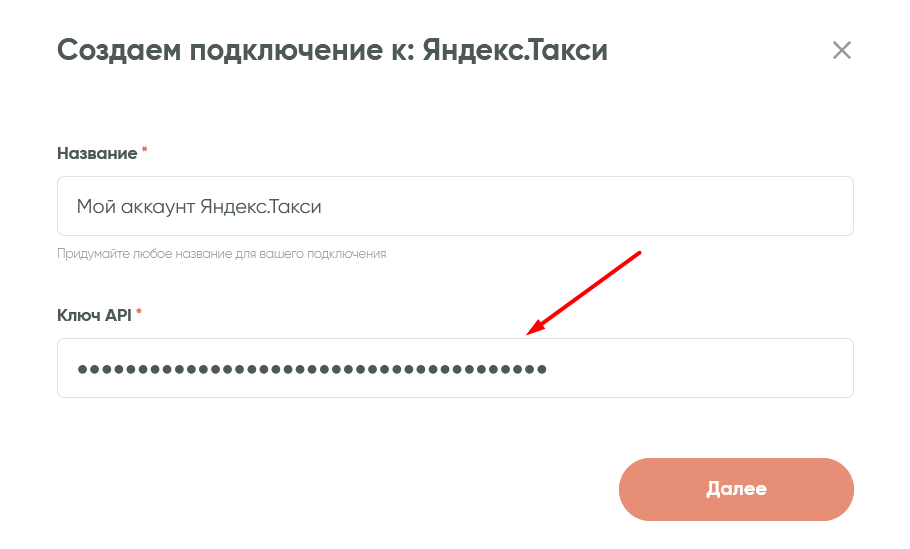 Скопируйте полученное значение и вставьте его в поле «Ключ API» в форму подключения Яндекс.Такси в Albato. Нажмите кнопку «Далее». Сохраните прогресс.