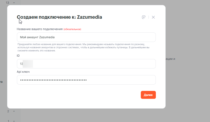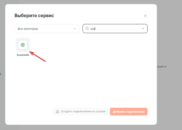 Найдите и выберите сервис Zazumedia из списка доступных подключений.